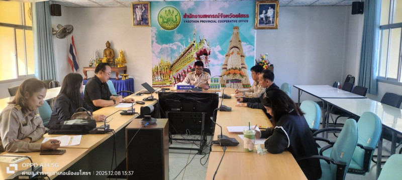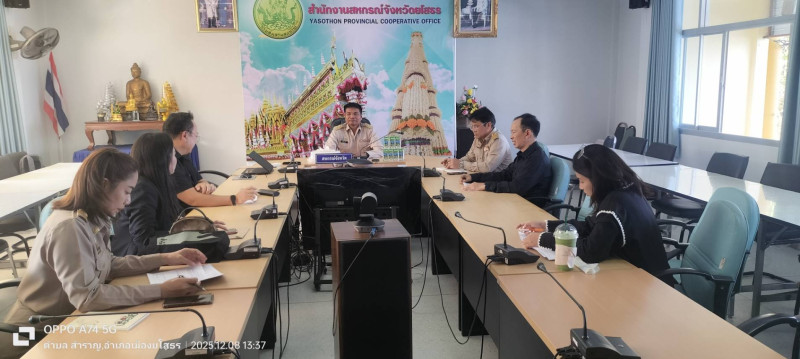 เมื่อวันที่ 8 ธันวาคม 2568 นายชายชาญ อาษาพล ผู้อำนวยการศูนย์ถ่ายทอดเทคโนโลยีการสหกรณ์ที่ 6 จังหวัดนครราชสีมา พร้อมด้วยนายปกิต ยอดเมืองเจริญ นักทรัพยากรบุคคลชำนาญการ และนางสาวโยษิตา สนนา นักทรัพยากรบุคคลชำนาญการ ผู้ดูแลพื้นที่รับผิดชอบจังหวัดยโสธร และจังหวัดร้อยเอ็ด ร่วมประชุมเพื่อชี้แจงโครงการตามแผนปฏิบัติงานประจำปีงบประมาณ พ.ศ.2569