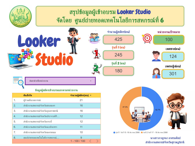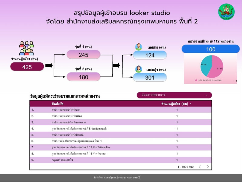 โครงการอบรมเชิงปฏิบัติการ หลักสูตร การรายงานสรุปผลข้อมูล Dashboard ด้วย Looker Studio เพื่อเพิ่มประสิทธิภาพการปฏิบัติงาน รุ่นที่ 2