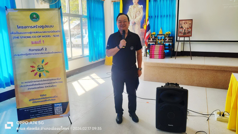 วันที่ 17 กุมภาพันธ์ 2569 นายชายชาญ อาษาพล ผู้อำนวยการศูนย์ถ่ายทอดเทคโนโลยีการสหกรณ์ที่ 6 จังหวัดนครราชสีมา และทีมงาน จัดโครงการสร้างรูปแบบเพื่อเป็นแนวทางสู่การพัฒนาสหกรณ์เข้มแข็ง (The strong Coop Model: SCM) ระยะที่ 1 กิจกรรมที่ 2 ประชุมเชิงปฏิบัติการวิเคราะห์ความเข้มแข็งสหกรณ์ โดยมีนายภาณุพงศ์ แสงคำ สหกรณ์จังหวัดยโสธร มาเป็นประธานในการประชุม ณ สหกรณ์การเกษตรในโครงการพัฒนาพื้นที่บริเวณหนองอึ่ง อันเนื่องมาจากพระราชดำริ จำกัด อำเภอเมือง จังหวัดยโสธร