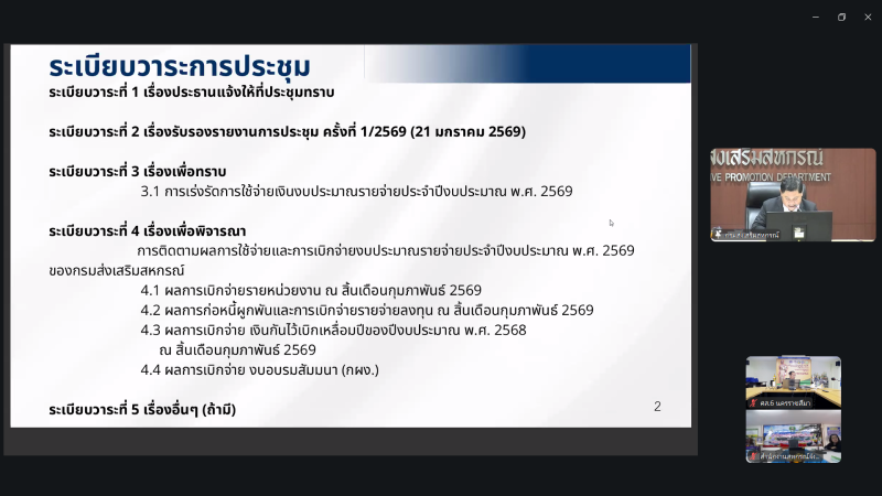 วันที่ 5 มีนาคม 2569 นายชายชาญ อาษาพล ผู้อำนวยการศูนย์ถ่ายทอดเทคโนโลยีการสหกรณ์ที่ 6 จังหวัดนครราชสีมา พร้อมด้วยบุคลากรในหน่วยงานร่วมประชุมติดตามเร่งรัดการใช้จ่ายงบประมาณของกรมส่งเสริมสหกรณ์ โดยมีนายณฤทธิ์ บุญชัย รองอธิบดีกรมส่งเสริมสหกรณ์ ประธานคณะกรรมการติดตามเร่งรัดการใช้จ่ายเงินงบประมาณของกรมส่งเสริมสหรกณ์ ครั้งที่ 2/2569 ทั้งในส่วนกลางและส่วนภูมิภาค โดยรับถ่ายทอดสัญญาณผ่านระบบ Zoom Meeting จากห้องประชุม 226 กรมส่งเสริมสหกรณ์