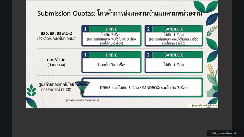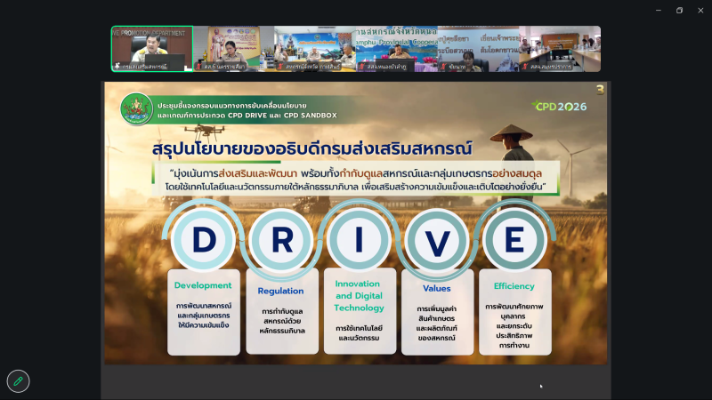 วันที่ 23 มีนาคม 2569 นางสาวอนิสรา หมวกแก้ว นักทรัพยากรบุคคลชำนาญการพิเศษ ศูนย์ถ่ายทอดเทคโนโลยีการสหกรณ์ที่ 6 พร้อมด้วยข้าราชการ และพนักงานราชการ เข้าร่วมการประชุมชี้แจงกรอบแนวทางการขับเคลื่อนนโยบาย และเกณฑ์การประกวด CPD DRIVE และ CPD SANDBOX ประจำปีงบประมาณ พ.ศ. 2569 ผ่านระบบออนไลน์ (Zoom Meeting)โดยมี นายณฤทธิ์ บุญชัย รองอธิบดีกรมส่งเสริมสหกรณ์ เป็นประธาน เพื่อรับทราบและขับเคลื่อนนโยบายให้เป็นไปอย่างมีประสิทธิภาพ เกิดผลเป็นรูปธรรม รวมถึงบรรลุเป้าหมายที่กำหนดไว้